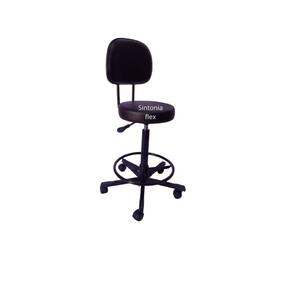 Cadeira caixa alta mocho secretaria com L duplo e aro com base em aço com rodízio corano preta Cadeira caixa alta mocho secretaria - L duplo - apoio para os pés - base em aço com rodízio - madeira reflorestada - espuma injetada anatômica - bordas em pvc flexivel - pintura eletróstática - estrutura em aço. Altura do chão ao assento: Minimo 63cm Máximo 75cm Marca: Sintonia Flex