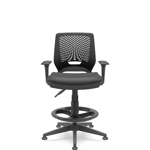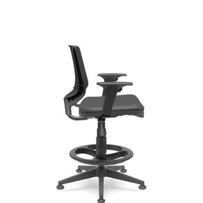 O design moderno da Beezi Caixa reflete-se no encosto e assento, desenhados para oferecerem ergonomia. Compostos em material termoplástico de engenharia, presente também nos apoios de braço, esse modelo da linha possui elevação e apoios para pés, indicados para bancadas mais altas e outras aplicações práticas que exigem acomodação em uma posição elevada.