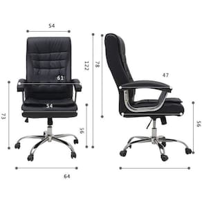 Cadeira Califórnia Com Revestimento Em Couro Cor PRETO BASEMATERIAL AçO CROMADO Peso Bruto Kg 12 Peso-maximo-suportado-kg 120 Cor PRETO BASEMATERIAL AçO CROMADO Peso Bruto Kg 12 Peso-maximo-suportado-kg 120 Precisando de uma cadeira confortável para o trabalho A Cadeira Presidente Em Molas Ensacadas é o modelo mais confortável e seguro do mercado de cadeiras para escritório. Fabricada pensando no conforto e bem estar do usuário, seu formato é anatômico e seu assento composto por molas ensacadas. Portanto se você passa várias horas do seu dia trabalhando sentado essa é a Cadeira Presidente Ideal, esqueça as dores lombar, desconforto e no final do dia. Os braços fixos NÃO possuem regulagem de altura. O Sistema Relax é acionado na mesma alavanca de regulagem de altura com trava no nível 0, Permite reclinar a parte do assento com encosto podendo travá-lo na posição ideal para auxiliar na ergonomia proporcionando melhor postura e conforto. Sistema Relax: Dispositivo que auxilia o sistema Relax quando é acionado pois se trata de um sistema localizado abaixo do assento quanto maior a força da pressão mais estável e quanto menor a pressão mais flexível. Com estrutura reforçada, a cadeira tem base giratória em metal cromado, material de qualidade que proporciona maior durabilidade e resistência. Rodinhas de nylon anti risco.Instruções de limpeza: Aplique um sabão em um esponja úmida e limpe toda a superfície da cadeira e logo em seguida limpe o sabão com um pano branco úmido. As rodinhas precisam estar sempre limpas caso contrário ela terá sua movimentação comprometida logo basta passar um pano limpo nas rodinhas removendo todas as sujeiras.Especificações TécnicasAssento: Estrutura Revestida em PUBase: Aço CromadoProfundidade: 60cmLargura: 64cmAltura Total: Alta 123 cm - Baixa 113 cmAltura do Chão até o Assento: Alta 60 cm - Baixa 50 cmAltura do Chão até o Braço: Alta 79 cm - Baixa 69 cmProfundidade interno no assento: 51cmLargura interno do assento 54cmbase Estrela com 70cm de diâmetro.Peso Máx. Recomendado: 120 kgsPeso Unitário: 12 kgsGarantia: 90 dias após o recebimento.Importante: A cor do produto recebido pode variar conforme o monitor visualizado. Não nos responsabilizamos pela montagem. Marca: Não Informado