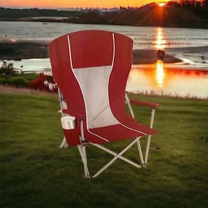 Cadeira para camping importada Cadeira extra grande com apoio acolchoado para braços e cabeça. Estrutura de aço resistente para peso máximo de 147 kgs. Bolsa para transporte e armazenamento com alça ajustável. Tecido transpirável e absorvente que elimina a umidade. Suporte giratório para copo. Cadeira com alça prática e ajustável para transporte. Bolsa para transporte inclusa. Dimensões: 69,5 cm diâmetro x 63,5 cm largura x 1,01 m altura.