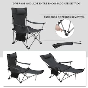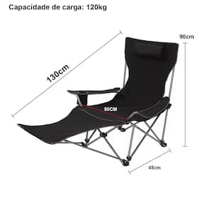Cadeira Camping Dobrável Pesca Praia Espreguiçãdeira Preta