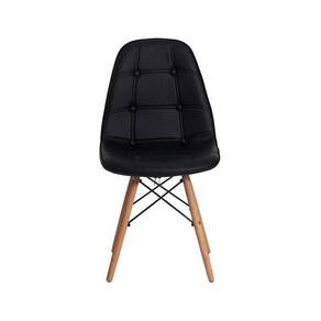 Cadeira Para Mesa De Jantar Com Encosto Estofada Escrivaninha Penteadeira Cozinha Sala Charles Eames Eiffel Botonê Capitonê Base Madeira Wood Preta