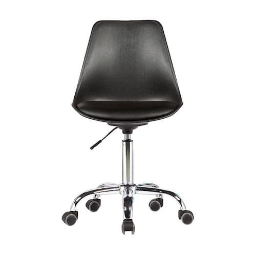 Características: Estrutura em Polipropileno com Estofado PU e Base Cromada Pés Reguláveis: Rodizio Como Utilizar: Cuidados Com o Produto / Pano Úmido Matéria Prima: Polipropileno, Couro sintético, Metal