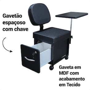 1 Cadeira de Manicure e Pedicure Milão com Gaveta e Gavetão Tampo de apoio removível