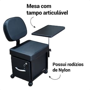 Cadeira Cirandinha Manicure com Gavetão Tampo e Rodízios