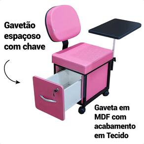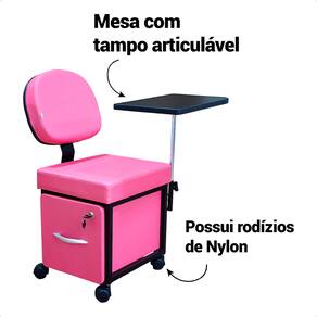 Cadeira Cirandinha Manicure com Gavetão Tampo e Rodízios - Estofado Pink Estrutura Preta