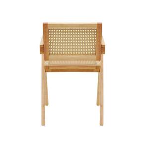 Cadeira Com Assento Encosto Rattan Base Madeira Cor Natural