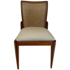 Conforto A combinação entre a madeira de jequitibá e a tela sextavada confere ao modelo uma presença leve, porém marcante. A ergonomia do encosto favorece uma postura agradável e acolhedora, feito para longos momentos à mesa ou em espaços de convivência.