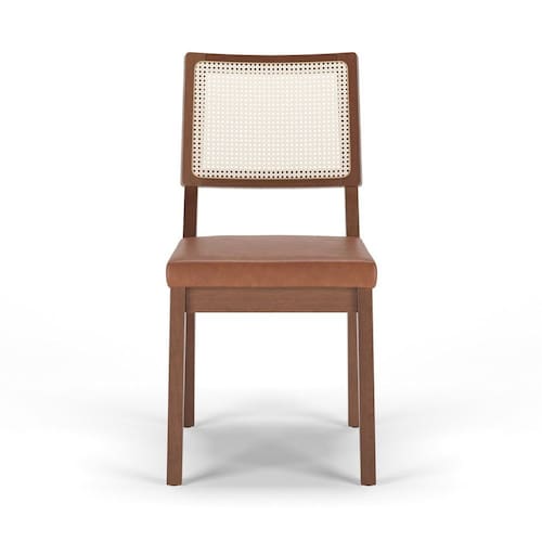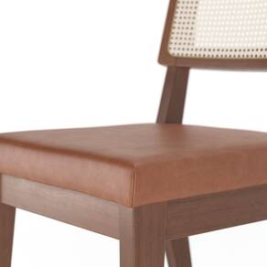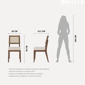 Produzida com pés em madeira maciça e acabamento em verniz PU natural, valoriza o visual da madeira e garante durabilidade. Seu assento com espuma D23 oferece conforto e aquele toque aconchegante. O encosto é o grande destaque, com detalhe atemporal em palha sintética de nylon que traz charme e leveza ao design.