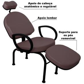 Cadeira Conforty para Maquiagem Cílios Sobrancelha unhasPara execução de vários procedimentos de estética e beleza, a For-ty Store lançou a Cadeira Multiuso para Procedimentos modelo Conforty.Com ela, você pode fazer serviços como maquiagem, cílios, sobrancelha, limpeza de pele, unhas, e demais procedimentos, mantendo máximo de conforto para cliente.É uma cadeira robusta, que tem inclinação e apoios corretos para variados serviços.Características:- Cor do estofado: CAFÉ em Tecido Sintético Facto, o tecido Facto é resistente ao uso de Álcool 70 para limpeza e higienização. - Encosto de cabeça anatômico, com altura ajustável, que apoia a nuca, dando conforto para o cliente e a firmeza que o profissional precisa- Apoio lombar, para que seu cliente se sinta confortável pelo tempo que necessite para execução do procedimento- Apoio de pernas: além de deixar seu cliente relaxado, tem a altura certa para procedimentos nos pés e unhas dos pés. Pode ser removível- Apoio de braços em P.U., material resistente e com toque macioMedidas da cadeira montada: 130cm x 63cm x 85cmSem o apoio de pé: 90cm x 63cm x 85cmMedidas internas no assento: largura 49cm x Profundidade 48 cmMedidas internas do encosto: Largura 47,5cm x Altura 42cmMedida do assento ao chão: Parte incial do encosto 42cm x Parte final próximo ao apoio de pés 52cmAlturas do apoio de pés: Mínima 39,5 cm e Máxima 49 cmSuporta até 160Kg distribuídos Peso 19kg Todas as medidas são aproximadas podendo haver pequenas variações.Medida da caixa: 68cm x 53cm x 54cm