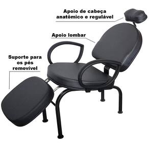 Cadeira Conforty + Mocho Maquiagem Cílios Sobrancelha UnhasPara execução de vários procedimentos de estética e beleza, a For-ty Store lançou a Cadeira Multiuso para Procedimentos modelo Conforty.Com ela, você pode fazer serviços como maquiagem, cílios, sobrancelha, limpeza de pele, unhas, e demais procedimentos, mantendo conforto para cliente e profissional.É uma cadeira robusta, que tem inclinação e apoios corretos para variados serviços.Características:- Encosto de cabeça anatômico, com altura ajustável, que apoia a nuca, dando conforto para o cliente e a firmeza que o profissional precisa- Apoio lombar, para que seu cliente se sinta confortável pelo tempo que necessite para execução do procedimento - Apoio de pernas: além de deixar seu cliente relaxado, tem a altura certa para procedimentos nos pés e unhas dos pés. Pode ser removível- Apoio de braços em P.U., material resistente e com toque macio- Cadeira de apoio para profissional, tipo mocho, para procedimentos onde o profissional pode executar sentado. Possui regulagem de altura e espuma injetadaMedidas da cadeira: 130cm x 63cm x 85cmSem o apoio de pé: 90cm x 63cm x 85cmMedidas do mocho: Altura mínima 53cm e máxima 64cmAssento 38cm diâmetroPentapé 57cm diâmetroMedida da caixa:71cm x 61cm x 66cmPeso do Kit 18kg