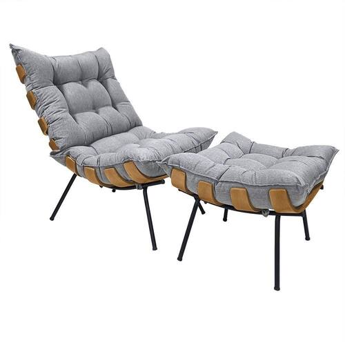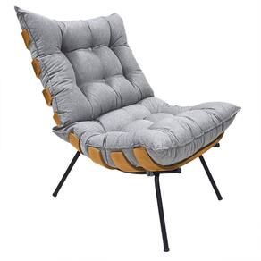 Cadeira Costela Com Puff Para Sala De Estar Élpis Móveis Linho Cinza