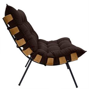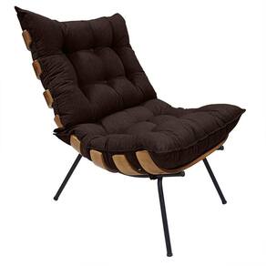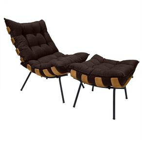 Cadeira Costela Com Puff Para Sala De Estar Élpis Móveis Linho Marrom