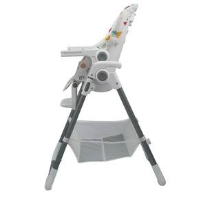 Adequado para mais de 6 meses. Estofado em couro ecológico, fácil de limpar. 6 posições de altura. 5 posições reclináveis. 3 posições no estribo. Bandeja dupla ajustável em 3 posições. Separador de virilha. Rodas traseiras e base dianteira antiderrapante. Dobragem fácil e compacta. Cinto de segurança de 5 pontos