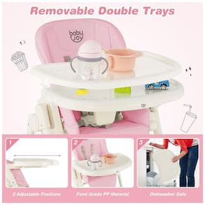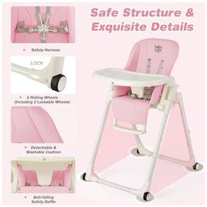 Cadeira alta para bebê multi ajustável nossa cadeira alta para bebê possui 6 alturas ajustáveis, 3 comprimentos e posições de apoio para os pés, encosto de 5 posições e bandejas duplas de 2 posições, atendendo às suas diferentes necessidades e acompanhando o crescimento de seu filho. Com design 4 em 1, esta cadeira alta pode ser usada para seu bebê descansar, brincar, comer e muito mais. Bandejas duplas removíveis as bandejas duplas podem ser lavadas na máquina de lavar louça e podem ser usadas separadamente. A bandeja superior com ranhura é adequada para colocar mamadeiras ou intestinos enquanto a bandeja inferior é ideal para brincar ou ler livros. Além disso, as bandejas duplas podem ser removidas e fixadas nas pernas traseiras quando não estiverem em uso. Projetos de segurança confiáveis Equipados com arnês de segurança de 5 pontos e defletor de segurança anti queda, os pais podem se concentrar no trabalho sem se preocupar com o bebê. As 4 rodas giratórias incluem 2 rodas bloqueáveis para aumentar a segurança. Além disso, a estrutura triangular garante alta estabilidade durante o uso. Materiais premium e estrutura estável Feito de estrutura de liga de alumínio, esta cadeira alta para bebês é resistente e durável para uso prolongado. Além disso, feita de almofada de assento amiga da pele e material PP de qualidade alimentar, esta cadeira de jantar infantil não contém substâncias nocivas e é segura para a saúde do seu bebê. Dobragem com um clique e fácil manutenção a montagem é fácil com instruções detalhadas. Mais importante ainda, a cadeira alta de alimentação é fácil e rápida de dobrar, o que economiza espaço de zenamento valioso e é conveniente de transportar. Além do mais, a almofada do assento é destacável e lavável para limpeza regular Marca: Não Informado