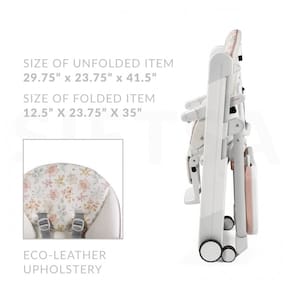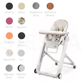 Assento reclinável confortável que reclina totalmente no ângulo de descanso mais confortável para o bebê. Feito na Itália. Cinco posições de assento reclináveis Nove posições de altura diferentes Apoio para os pés Apoio para os pés ajustável em três posições. Assento de inclinação no espaço evoluído que reclina totalmente. Fácil de limpar o estofamento de couro ecológico é resistente a manchas, durável, fácil de remover e pode ser limpo com um pano úmido. Inclui forro de bandeja laváveis. Divisor de perna anatômico e bolso de zenamento de malha. As rodas giratórias resistentes a danos travam automaticamente para segurança. Cinto de segurança de cinco pontos e barra de retenção passiva Marca: Não Informado