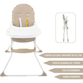 A Cadeira de Refeição é ideal para bebês até 23 Kg. Dispõe assento, encosto e laterais acolchoados em plástico laminado sendo mais confortável e muito fácil de limpar, cinto 5 pontos que garante a segurança dos pais e das crianças.