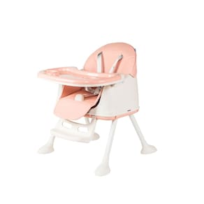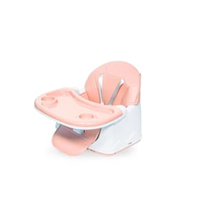 A cadeira de alimentação possui 4 fases: Alta, Infantil, Booster e com Rodinhas. Além de portátil, totalmente desmontável com espaço interno que armazena todas as peças, possui bandeja removível e ajustável em 3 posições, apoio dos pés removível e bolsa de armazenagem.