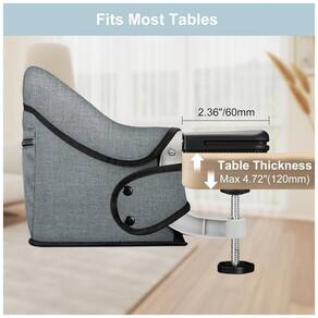 MONTAGEM E DESMONTAGEM RÁPIDA Instalação rápida e desmontagem em apenas 20s sem ferramentas para jantar em casa e em movimento, e a tampa do assento removível também pode ser limpa facilmente. Esta cadeira alta rápida é compatível com as mesas de jantar e bancadas mais pesadas e resistentes de 2 a de espessura. Dicas Meça primeiro a borda da mesa. CADEIRA ALTA DE MESA PORTÁTIL Este gancho na cadeira alta possui cinto de segurança ajustável em dois lados e arnês em forma de T na frente para ficar no assento, segurando bebê e criança entre 6 e 36 meses até 16 kg que podem sentar se eretos sem qualquer ajuda. Estrutura metálica em forma de D para reforço que proporciona estabilidade. O grande gancho de braçadeira antiderrapante faz com que ele se encaixe firmemente na mesa e não danifique ou arranhe a superfície das mesas. GANCHO NA CADEIRA ALTA COM BANDEJA Este acessório para assento de mesa rápido é um design dobrável para viagens e ocupa muito menos espaço e pode ser zenado em qualquer lugar. Bandeja de alimentação removível com porta copos, protege a comida de cair nos móveis. Vem com uma bolsa de transporte, também conveniente para tirar. CADEIRA DE ALIMENTAÇÃO PARA BEBÊS RESISTENTE Esta cadeira alta de mesa portátil é feita de material macio, bem feita e costura reforçada. A capa do assento é fácil de lavar com pano úmido ou na água e secar. Bolso de zenamento com zíper na parte de trás para zenar babadores, utensílios e panos de lavagem facilmente Marca: Não Informado