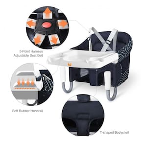 Ajuste na maioria das mesas A cadeira alta portátil adequada para a maioria dos tipos de mesas entre 0,8 e 3,3 20 de espessura, observe o deslocamento da borda da mesa e a espessura correspondente. A cadeira de mesa para bebês é o último estilo e perfeita como cadeira de alimentação de bebês em restrant ou balcão. Fácil de instalar e limpar Este gancho na cadeira leva apenas 20 segundos para instalar e desmontar, a dobra compacta cabe facilmente em bolsas de zenamento, carrinhos de bebê. A capa de algodão pode ser removível para limpeza fácil de lavar à mão ou na máquina. Cadeira de mesa segura e confortável O gancho na cadeira alta que se prende à mesa tem arnês ajustável de 5 pontos preso no assento até mesmo o bebê se inclinando para trás para proteger seu bebê. Cadeira alta de viagem portátil Nossa cadeira de bebê pesando apenas 900g, pode ser dobrada em bolsas de transporte. A cadeira de mesa para bebês vem com bandeja de jantar. onde quer que você vá, você pode carregar a cadeira de mesa com facilidade e é fácil de limpar e lavar Marca: Não Informado