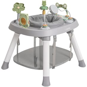 O centro de atividades possui assento giratório, apoio para os pés e 5 brinquedos interativos, incluindo um musical, que estimulam o desenvolvimento motor e cognitivo do bebê. A bandeja removível, ajustável em 3 posições, facilita a alimentação e a limpeza, enquanto o estofado removível garante higiene e conforto.