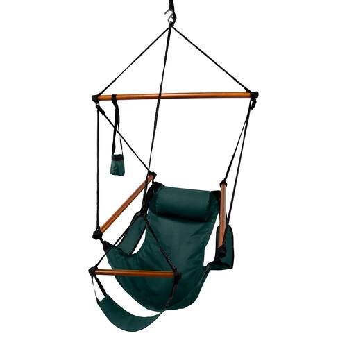 Cadeira de ar Hammaka Hanging Hammock, cavilhas de madeira, verde