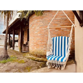 Cadeira De Balanço De Bolinha - Azul Escuro Com Listra Cru Uma rede de uso e um modo de instalar diferente das tradicionais. Também muito Utilizado como uma peça de decoração, ela nos leva ao convite para aquele descanso com um leve balanço e quem resiste e para os momentos de leitura. A rede inclui: haste para sustentá-la e madeira. Para sua segurança, sugerimos que sejam instaladas em viga de concreto. Nunca instale no teto de gesso. Informações das medidas: 1,75m x 0,75m Madeira de sustentação : 90cm comprimento Composição: 88% algodão / 12% poliéster Suporta até 150kg Onde usar: varandas grandes, área externas de casas de veraneio ou ambientes internos como jardins de inverno, salas e quartos. Indica-se que a cadeira seja lavada à seco ou à mão com sabão neutro, sem uso de alvejante. Atenção: as cores dos produtos podem variar em função da configuração do monitor. Instalação: - a cadeira pode ser instalada diretamente na laje, onde deverá ser chumbado um gancho de ferro que suporte o peso mínimo de 150 kg. - pode ser instalada também em uma haste de madeira resistente que suporte no mínimo 150 kg, que é o caso das casas ou varandas com telhado, utilizando cordas ou até mesmo correntes. Não é indicado que seja feita a instalação em tetos de gesso. A altura fica a critério do cliente ou da estrutura a qual a cadeira será instalada. Atenção: as cores dos produtos pode variar em função da configuração do monitor; As bolinhas podem ter cor diferente da foto devido a madeira disponível. Marca: Ddb Ean: 2960008293997