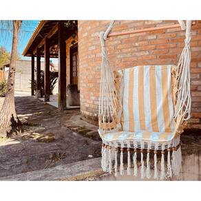 Cadeira de balanço de bolinha Uma rede de uso e um modo de instalar diferente das tradicionais. Também muito Utilizado como uma peça de decoração, ela nos leva ao convite para aquele descanso com um leve balanço e quem resiste e para os momentos de leitura. A rede inclui: haste para sustentá-la e madeira. Para sua segurança, sugerimos que sejam instaladas em viga de concreto. Nunca instale no teto de gesso. Informações das medidas: 1,75m x 0,75m Madeira de sustentação : 90cm comprimento Composição: 88% algodão / 12% poliéster Suporta até 150kg Onde usar: varandas grandes, área externas de casas de veraneio ou ambientes internos como jardins de inverno, salas e quartos. Indica-se que a cadeira seja lavada à seco ou à mão com sabão neutro, sem uso de alvejante. Atenção: as cores dos produtos podem variar em função da configuração do monitor. Instalação: - a cadeira pode ser instalada diretamente na laje, onde deverá ser chumbado um gancho de ferro que suporte o peso mínimo de 150 kg. - pode ser instalada também em uma haste de madeira resistente que suporte no mínimo 150 kg, que é o caso das casas ou varandas com telhado, utilizando cordas ou até mesmo correntes. Marca: Não Informado