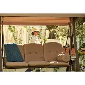 Características da Banco Aço 3 lugares Confort 184x118cm Marrom Este banco nada mais é do que um lindo e confortável balanço para jardim. Ele é do modelo Confort e na tonalidade marrom, que é super fácil para combinar com os outros elementos da decoração. É no formato retangular e indicado para as áreas externas e sem cobertura.