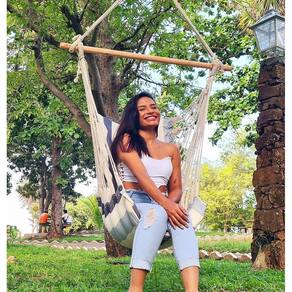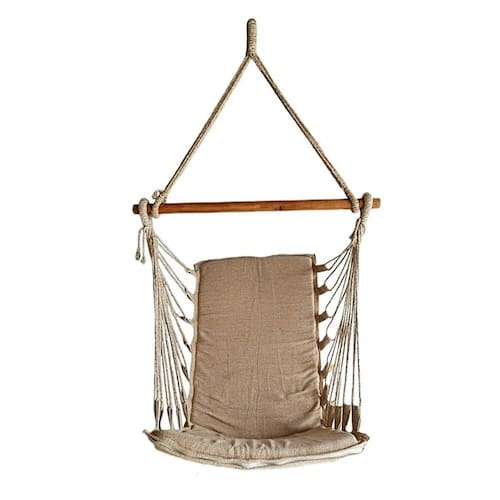 Cor: Caramelo Mesclado Que tal uma cadeira suspensa que você possa levar e instalar em Praticamente todos os lugares aonde forem como sacadas, Varandas, parques, acampamentos, em casa, quintal, etc., pois, pode ser Pendurada em vigas, lajes, arvores, telhados ou em qualquer lugar que tenha A altura e suporte o peso recomendado.