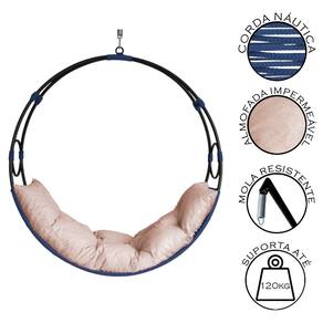ESPECIFICAÇÕES TÉCNICAS: - Marca: Acesse Móveis; - Modelo:Cadeira l Balanço Suspenso Lua em Corda Náutica; - Material da Estrutura: Aço Carbono; - Acabamento: Corda Náutica com anti-UV; - Material do Assento: Impermeável - Enchimento do Assento: Espuma D28; - Acompanha Almofada? Somente a almofada do assento; - Possui Corrente? Acompanha mola e mosquetão; - Garantia: 3 Meses; - Suporta Até -kg-: 150kg; - Necessita de Montagem?-Sim/Não-: Sim, necessita somente de um encaixe; - Medidas -LarguraxProfundidadexAltura-: 140x50x140cm; Marca: Acesse Móveis