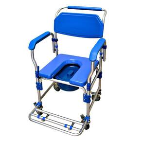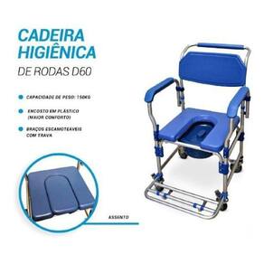 Cadeira de banho adulto aluminio 150kg D60 Dellamed A Cadeira de Banho D60 da Dellamed, veio com um novo conceito para caideiras higiênicas. Além de ser em alumínio, material que não enferruja, veio também com um assento almofadado para proporcionar maior conforto ao cliente. Rodas com um giro de 360º e com proteção nos rolamentos. Possui um assento removível com tampa, apoio de braços articulados, freios nas 4 rodas, apoio de para os pés articulados, com pneus maciços e encosto rígido em plástico injetado. Acompanha um coletor removível, que facilita o dia a dia dos cuidadores. É uma excelente cadeira Leve, construída em alumínio; Freios nas 4 rodas proporcionando maior segurança; Coletor removível; Para 150kg - Reforçada e Segura. Largura do assento: 44cm Profundidade do Assento: 42cm Altura Encosto: 45cm Altura do assento do chão: 55cm Largura aberta: 45cm Altura total: 96cm Altura do chão do apoio de braço: 80cm