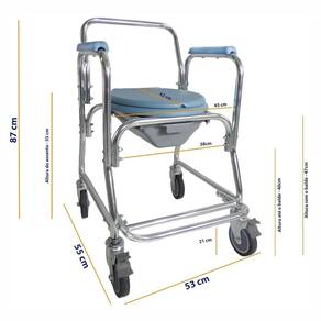 A cadeira higiênica ajuda no dia a dia de idosos e pessoas com dificuldade de locomoção e equilíbrio. A cadeira higiênica é feita de alumínio de alta qualidade, resistente e anti ferrugem. Assento com tampa sanitária fabricada em polietileno. Freios nas rodas da frente. Capacidade de até 120 kg. Possui apoio para os braços e pés. Montagem fácil. Ficha técnica: Produto: cadeira de banho higiênica Fabricante: Zimedical Indicada para uso interno Composição: estrutura em alumínio demais peças metálicas não são de alumínio . Assento, tampa, apoio de braço em polietileno. Rodizio de 5 polegadas com freios nos rodízios dianteiros. Altura do assento: 55 cm Peso: aprox. 8 kg Registro na ANVISA: Classe I 80866380013. CE, ISO 13485: 2003, ISSO 9001: 2008; 6 meses para defeito de fabricação e incluso obrigatória. Marca: Não Informado