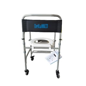 CARACTERÍSTICAS - Dobrável; - Estrutura em aço carbono e assento em plástico; - Apoio para os braços em plástico; - Apoio para os pés; - 4 rodízios com rodas giratórias de 4 polegadas, e 2 travas na dianteira; - Encosto em Nylon acolchoado de alta resistência; - Mais econômica: a qualidade Dellamed ainda mais acessível; - Montagem fácil; - Fácil de guardar: totalmente dobrável; - A única do mercado com giro 360 sobre o eixo, facilitando a movimentação em espaços pequenos; - 2 em 1: para uso em banho e sobre vaso sanitário; - Apoio para os braços ergonômico; - Não possui suporte para comadre; - Utilizada sobre o vaso e no banho; - Encosto flexível.