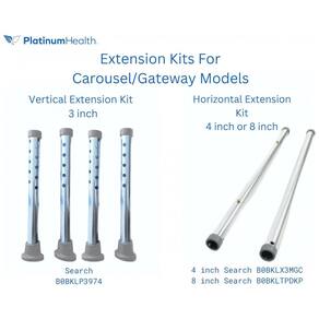 Extensão de perna vertical: adiciona 7,5 cm de altura (código: B0BKLP3974). Extensão de trilho horizontal de 10 cm: para maior alcance (código: B0BKLX3MGC). Extensão de trilho horizontal de 20 cm: para ainda mais flexibilidade (código: B0BKLTPDKP).