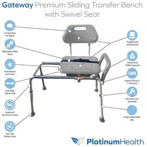 O Banco de Chuveiro de Transferência Deslizante Profissional foi desenvolvido para proporcionar segurança, conforto e conveniência durante a entrada e saída do chuveiro ou banheira. Seu design inovador permite transferências fáceis e seguras, eliminando o risco de quedas ou lesões. O banco deslizante e giratório facilita o movimento suave, ajudando a evitar lacerações na pele e distensões musculares, comuns em bancos de banho antigos. O assento e o encosto são acolchoados com estofamento de poliuretano moldado de célula fechada, de grau médico, que não absorve água e é fácil de limpar e desinfetar, proporcionando uma superfície confortável e antiderrapante.