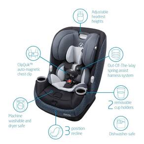 Faixa de peso mantém as crianças seguramente aproveitadas de 6 a 18 kg viradas para trás 9 a 29 kg voltado para a frente Modas selecionadas agora apresentam tecidos PureCosi que não exigem mais produtos químicos retardadores de fogo Tecidos premium e estofamento proporcionam o maior conforto para o seu filho A almofada do assento e as tampas do arnês fáceis de limpar são removíveis com encaixes simples, e nunca há necessidade de desinstalar o assento ou recolocar o arnês para colocar e tirar a almofada A almofada do assento e as capas do cinto são laváveis na máquina e seguras na secadora Marca: Não Informado
