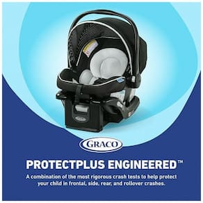 Graco ProtectPlus Engineered: uma combinação dos testes de colisão mais rigorosos que ajuda a proteger seu filho em colisões frontais, laterais, traseiras e capotamento; testes adicionais baseados no Programa de Avaliação de