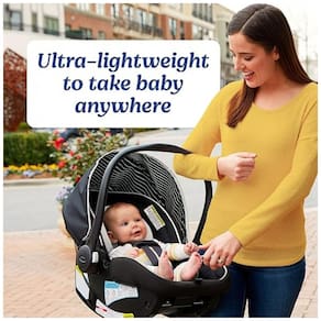 A cadeirinha leve pesa apenas 3,2 kg (7,2 lb), facilitando o transporte do bebê do carro para o carrinho.