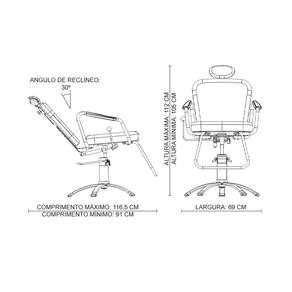 - Altura (Chão até Apoio de Cabeça): Mínima 105 cm / Máxima 112 cm
