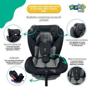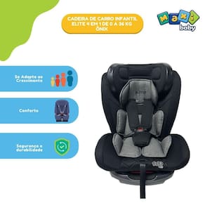 Cadeira de Carro Infantil Elite 0-36Kg Ônix Cinza Maxi Baby A cadeira Elite da Maxi Baby é uma cadeira para auto completa que irá atender todas as fases do seu filho, desde o nascimento até aproximadamente os 10 anos de idade, onde ele já estará pronto para o assento do veículo, não sendo necessário mais nenhuma cadeira de elevação. Possuí almofada removível para fácil lavagem, cinto de segurança de 5 pontos com ajuste de altura para os ombros em até 2 posições, reclinável em até 4 posições. Durante os primeiros meses do bebê, a cadeira Elite é instalada contra o movimento podendo estar nessa posição até 10kgs. Após 10kgs ela deverá ser fixada a favor do movimento e possui 4 opções de recline para melhor conforto da criança. Suas 4 posições de inclinação oferecem conforto para os passeios mais curtos ou as viagens mais longas, fazendo com que além de uma companheira da criança por toda a sua infância, seja uma grande aliada dos pais. Essa cadeirinha infantil é adequada para uso nos veículos ajustados com cintos de segurança retráteis de 3 pontos conta com o apoio de cabeça ajustável, almofada redutora de cabeça e costas, protetores de ombros e fivela com revestimento acolchoado e lavável. Produto certificado pelo INMETRO para maior segurança e conforto das crianças Principais Características: - Grupo: 0, 1, 2, 3 De 0 a 36Kg - Idade recomendada: A partir do Nascimento - No Grupo 0 Até 10kg - Deve ser instalada de costas para o movimento, fixada ao veículo com o cinto de segurança do veículo e a criança deve utilizar o cinto de segurança da própria cadeirinha - No Grupo 1 9 à 18kg - Deve ser fixada ao veículo com o cinto de segurança do veículo e a criança deve utilizar o cinto de segurança da própria cadeirinha - No Grupo 2 e 3 15 à 36kg - Deve ser utilizar sem os seus cintos de segurança da cadeira e o cinto de segurança do veículo deve prender a criança e a cadeirinha ao mesmo tempo. Utilização do cinto de segurança do veículo obrigatória a partir dos 18Kg e alternativamente à partir dos 15kgs. - Reclina em até 4 posições - Apoio de cabeça ajustável - Cinto de segurança de 5 pontos - 2 Ajustes de Ombros - Ajustador do cinto de segurança nos ombros - Dispositivo de Retenção com apoio de braço - Almofada redutora de costas e cabeça. - Protetores de Ombros e Fivela - Revestimento Acolchoado removível para lavar - Leve inclinação na base - Adequada para uso nos veículos ajustados com cintos de segurança retráteis de 3 pontos - Produto certificado pelo INMETRO Especificações Técnicas: - Conteúdo da Embalagem: 1 Cadeira de Carro + Manual de Instruções - Dimensões do Produto LxCxH : 48,0 x 53,0 x 60,0 cm aprox - Peso: 7,4 kg - Material/Composição: Plástico, Espuma, Poliuretano, Tecido - : 12 meses Contra Defeito de Fabricação Pelo Fabricante - Produto Certificado pelo INMETRO nº 009889/2022 - Referência do Fabricante: 21776 - EAN: 7899403217763 - Marca: Maxi Baby imagens meramente ilustrativas, as cores e estampas podem variar de acordo com o lote do fabricante. Marca: Não Informado