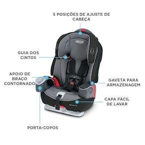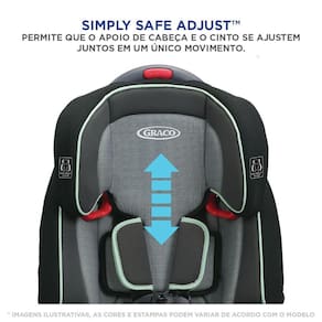 - Sistema de arnês Simply Safe Adjust permite que o apoio de cabeça e o cinto se ajustem juntos em um único movimento.