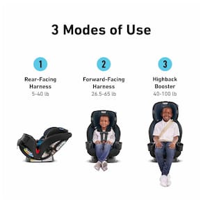 A Cadeira de Carro Graco TriRide 3 em 1 ajuda a manter seu pequeno seguro desde bebê até criança grande, oferecendo 3 modos de uso: arnês voltado para trás de 2,7 a 18 kg, arnês voltado para frente de 12 a 24 kg e assento de elevação de 18 a 45 kg. O Sistema de Arnês Ajustável Simply Safe Adjust sem necessidade de reenfiamento permite ajustar a altura do encosto de cabeça e arnês em um único movimento, poupando tempo e garantindo a segurança da criança. Escolha a altura perfeita do encosto de cabeça entre 10 posições e ajuste o assento para 6 posições reclináveis para uma instalação melhor. O indicador de nível de fácil leitura ajuda a eliminar suposições na instalação. A cadeira de carro é compatível com o sistema LATCH para uma instalação fácil. Os guias de cinto em laço aberto ajudam a posicionar corretamente o cinto do veículo sobre a criança no modo de elevação. 2 porta-copos fáceis de limpar mantêm as bebidas e lanchinhos da criança sempre à mão. O estofado confortável é lavável na máquina para sua conveniência. Os inserções removíveis para cabeça e corpo ajudam a manter seu bebê confortável. A estrutura reforçada de aço garante resistência e durabilidade por anos de uso. Esta cadeira de carro é Graco ProtectPlus Engineered para proteger em colisões frontais, laterais, traseiras e capotamentos. Cresce com seu filho, desde o arnês voltado para trás de 2,7 a 18 kg até o assento de elevação de 18 a 45 kg. Sistema de Arnês Ajustável Simply Safe permite ajustar o encosto de cabeça e arnês juntos em um único movimento. Escolha a altura perfeita do encosto de cabeça entre 10 posições para o ajuste mais seguro de acordo com o crescimento da criança. 6 posições de reclinação mantêm seu filho confortável e facilitam a instalação.