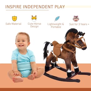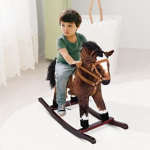 Este tradicional cavalo de pelúcia transformará qualquer quarto no Velho Oeste! Com este cavalo de balanço colorido, você pode ter um caráter de pelúcia exclusivo, além de uma posição confortável no selim para seu filho se divertir. O fundo é forrado com dois trilhos curvos para dar ao cavalo uma experiência de balanço para frente e para trás. As crianças podem controlar isso com o movimento do corpo na sela e com as alças fornecidas na lateral da cabeça do cavalo. Este cavalo é perfeito como peça permanente de mobiliário de brinquedo para qualquer ambiente e é resistente o suficiente para durar anos.