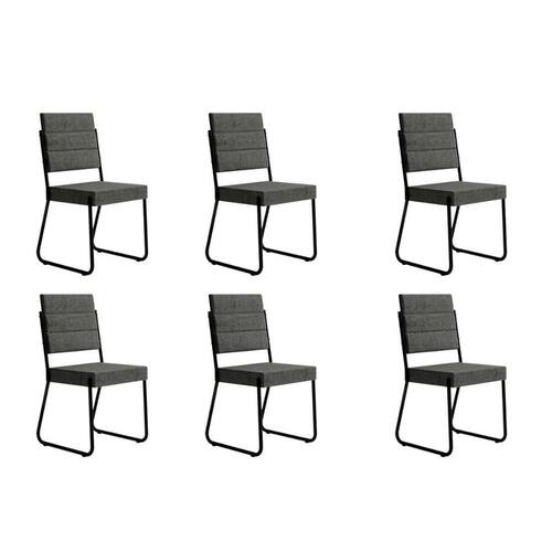 Cadeira Sala de Jantar 1736 Aço Kit 2 Uni Preto/Linho Grafite/Courano Preto - Carraro