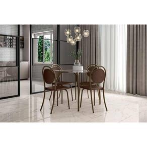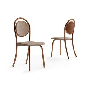 Cadeira Sala de Jantar 1738 Aço Kit 2 Uni Rose/Linho Areia/Courano Caramelo - Carraro