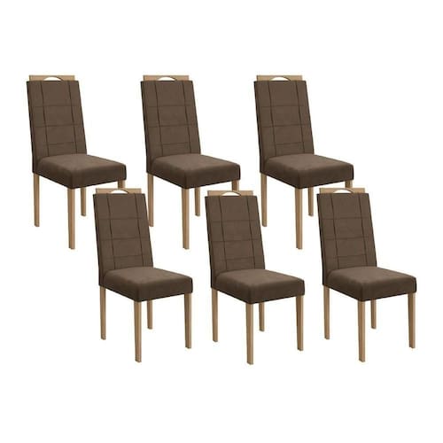 Cadeira De Cozinha 2cad150ea Kit 6 Un Eucalipto/suede Marrom A033 - Kappesberg