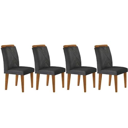 Cadeira de Cozinha Amsterdã Kit 4 Un Capuccino/Linho Grafite - Rufato