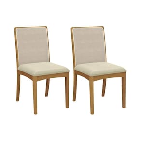 Cadeira Sala de Jantar Lara 2CMM007CA Premium Madeira Maciça Kit 2 Un Carvalho/Linho Bege Argila/Tela Bege - Kappesberg