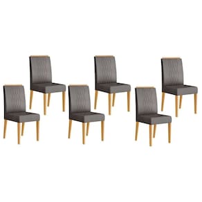 Cadeira De Cozinha Lia Kit 6 Un Cedro/suede Lunar - Dj Móveis